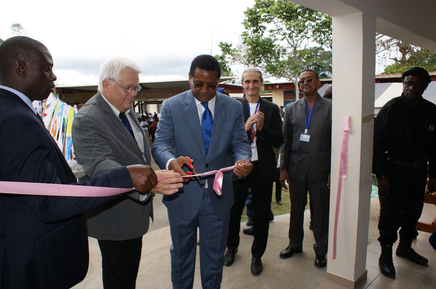 Das Band zur Maternite wird offiziell vom Ministerpräsidenten mit dem Präsidenten vom Spital Dr. Stoffel durchschnitten