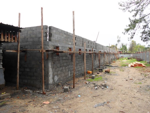 Das Gebäude der Maternité steht und nach europäischem Denken braucht es nur noch ganz wenige (aber entscheidende) Schlussarbeiten.